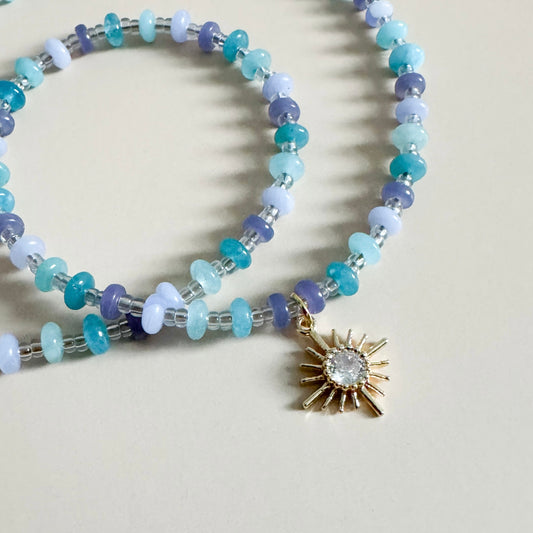 28" Jade and Agate Lanyard | Ocean Sunrise