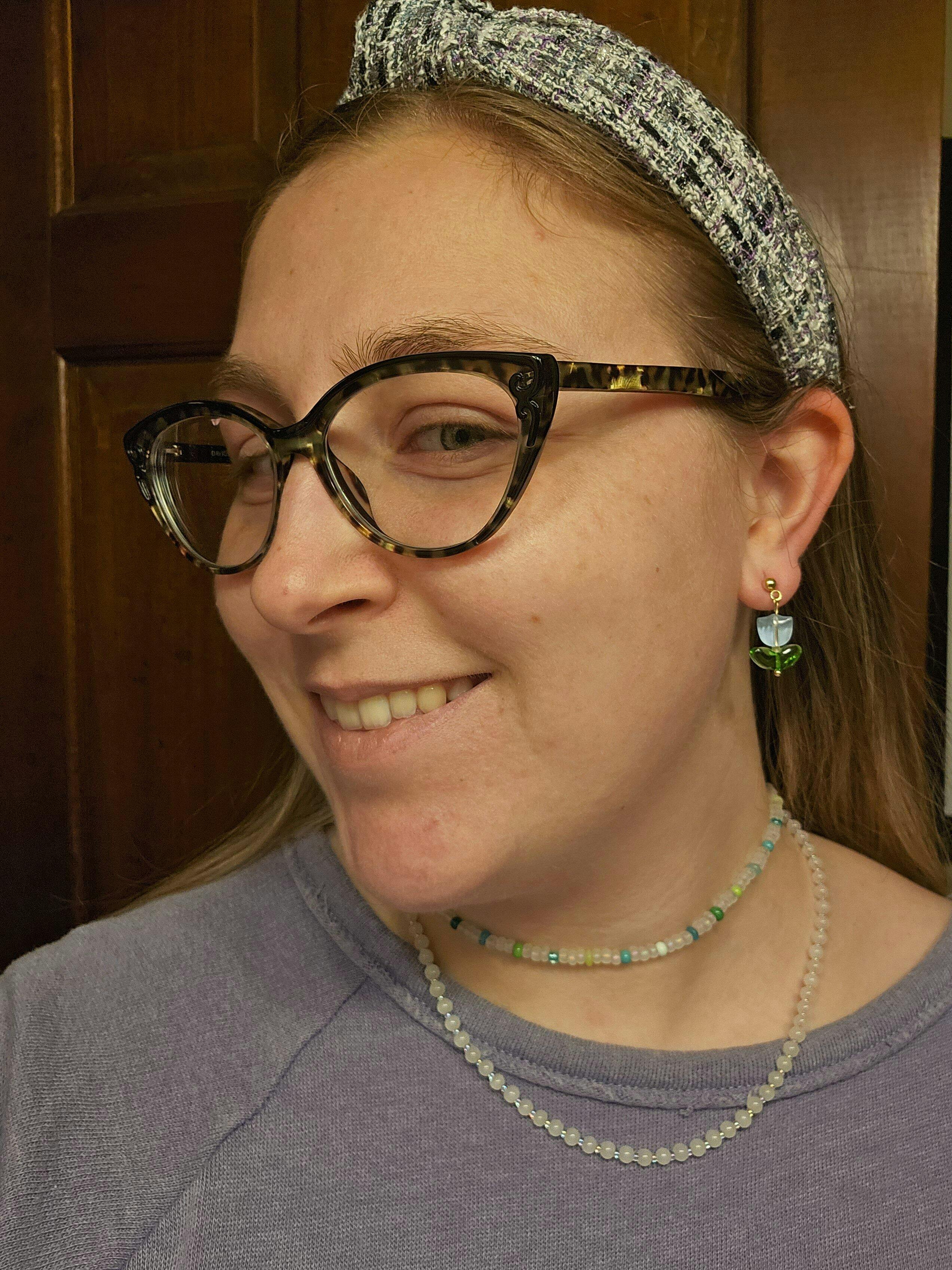 Tiny glass tulips! What could be more perfect?! These glimmering buds are paired with an 18k gold plated stud.